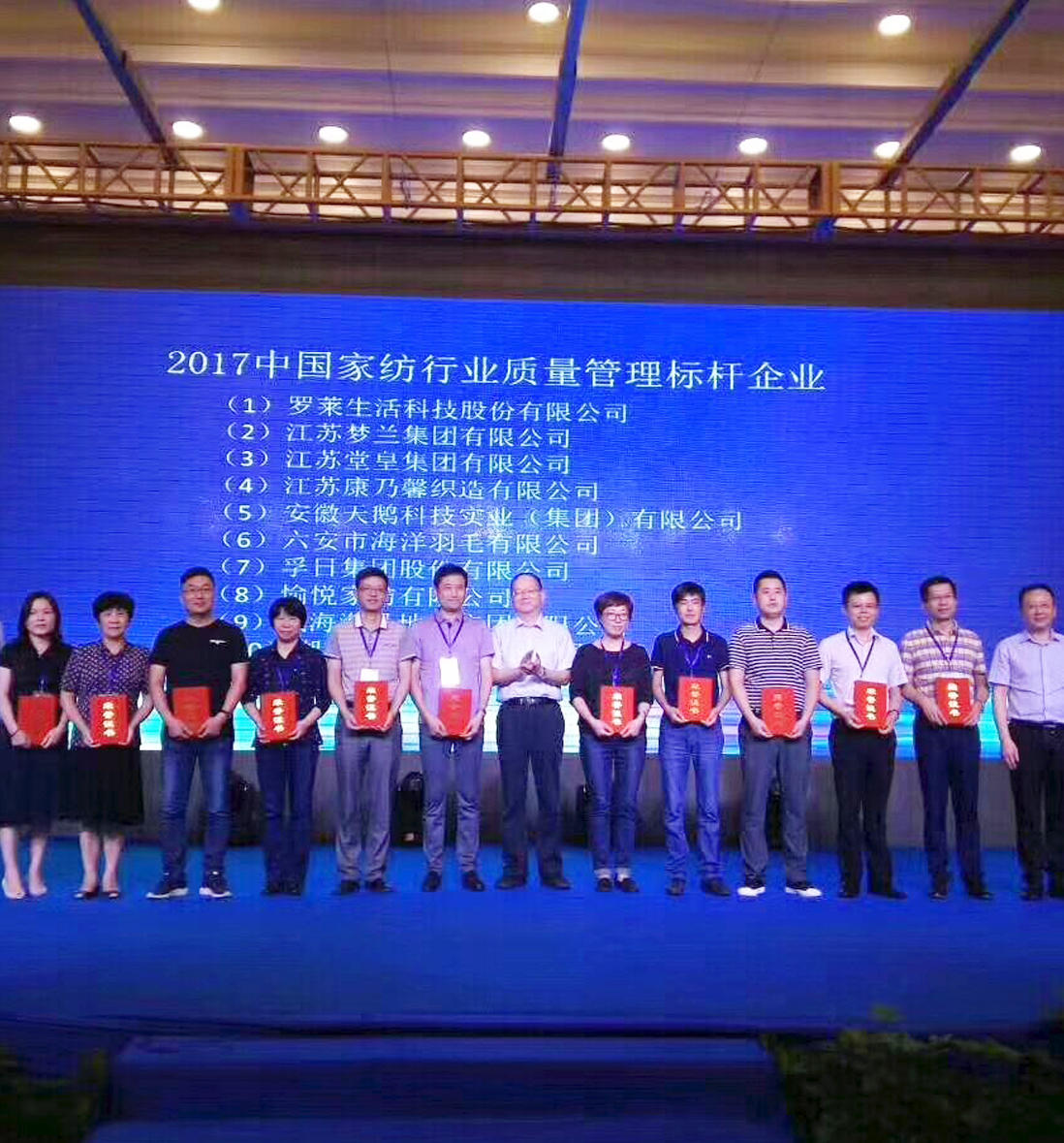 堂皇榮獲“2017中國家紡行業質量管理標桿企業”